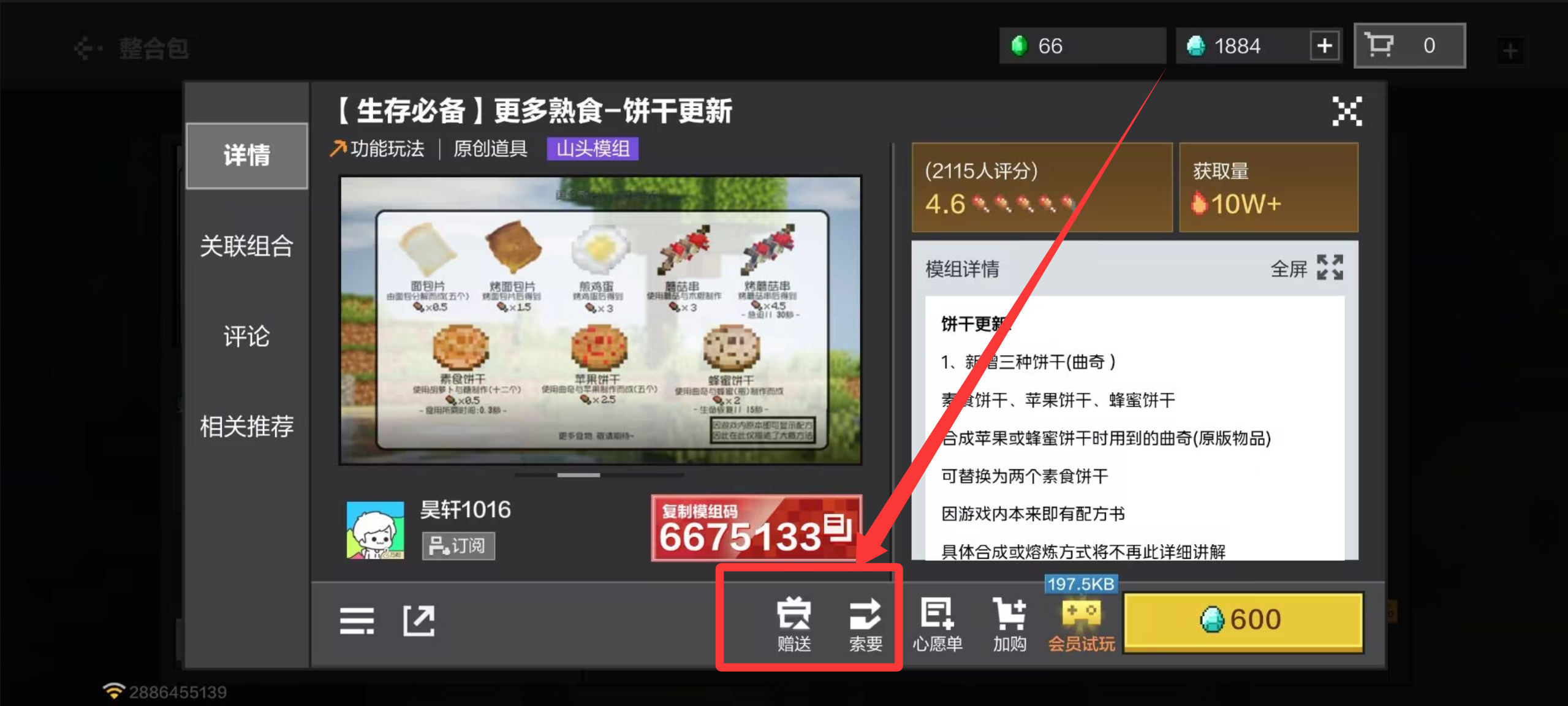 用于购买网易我的世界模组、皮肤等可赠送的东西(如图)。